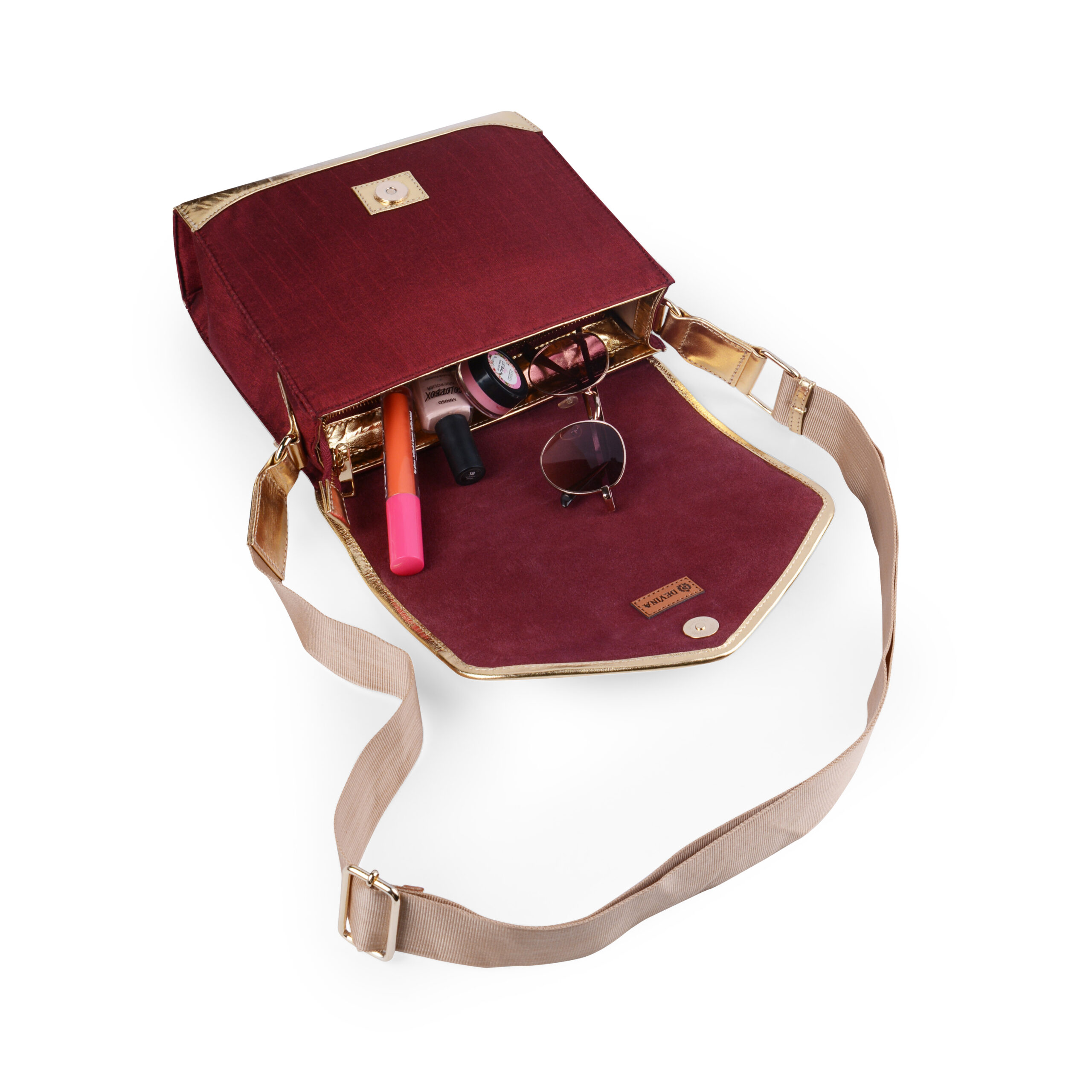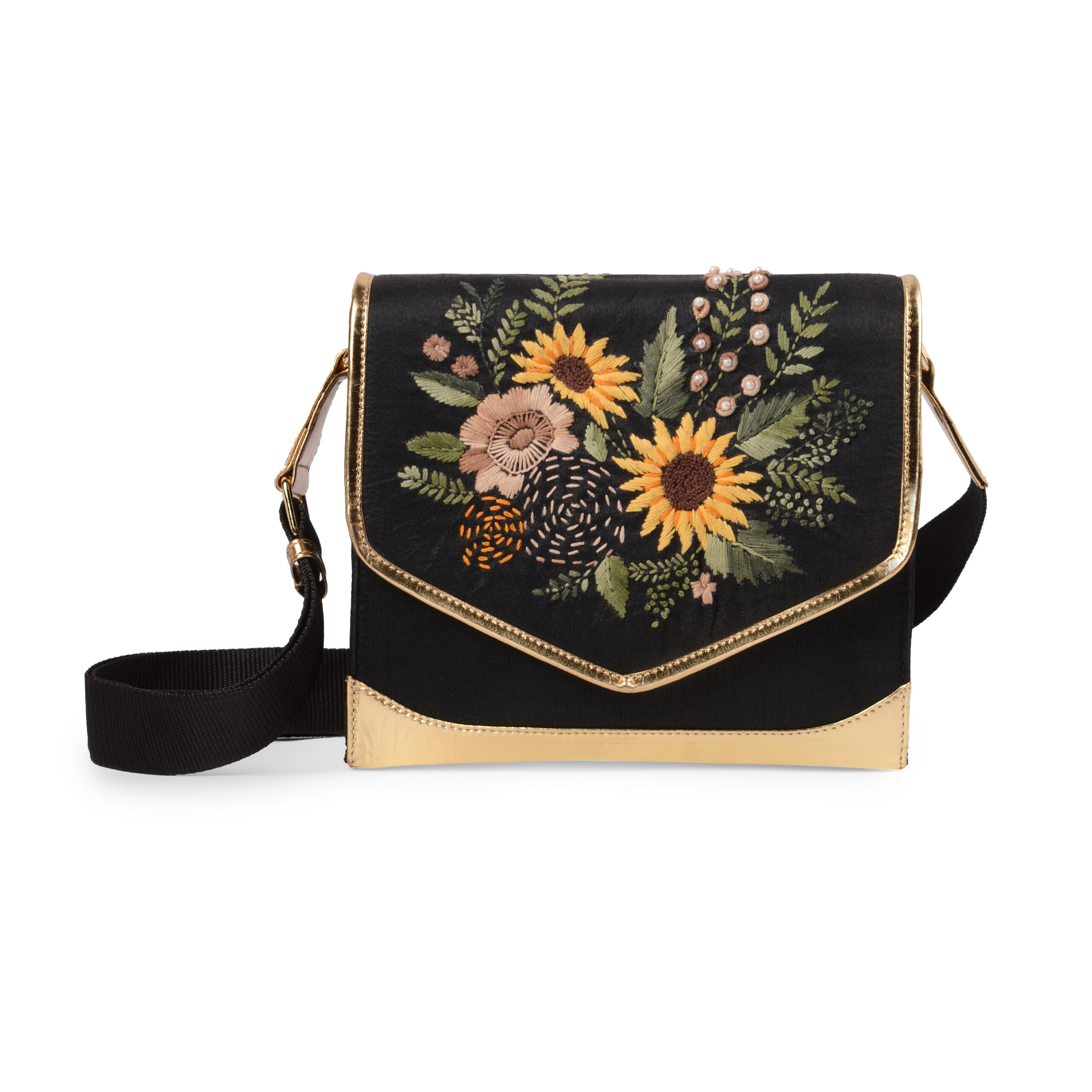 Elevate your everyday style with this unique, designer sling bag, meticulously hand-embroidered in vibrant, colourful threads. The floral patterns come to life on premium synthetic tussar fabric, beautifully complemented by long-lasting, soft leather accents.