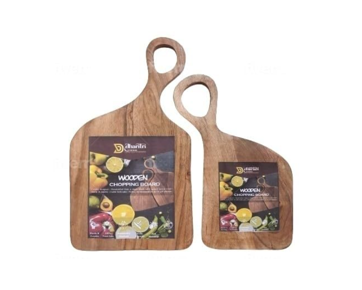 Dharitri Creations Wooden Chopping Board | Cutting| Serving Board | Platter for Kitchen Vegetables, Fruits & Cheese | Natural Acacia Wood | Handcrafted | Paired Design | Big & Small Size | Set of 2