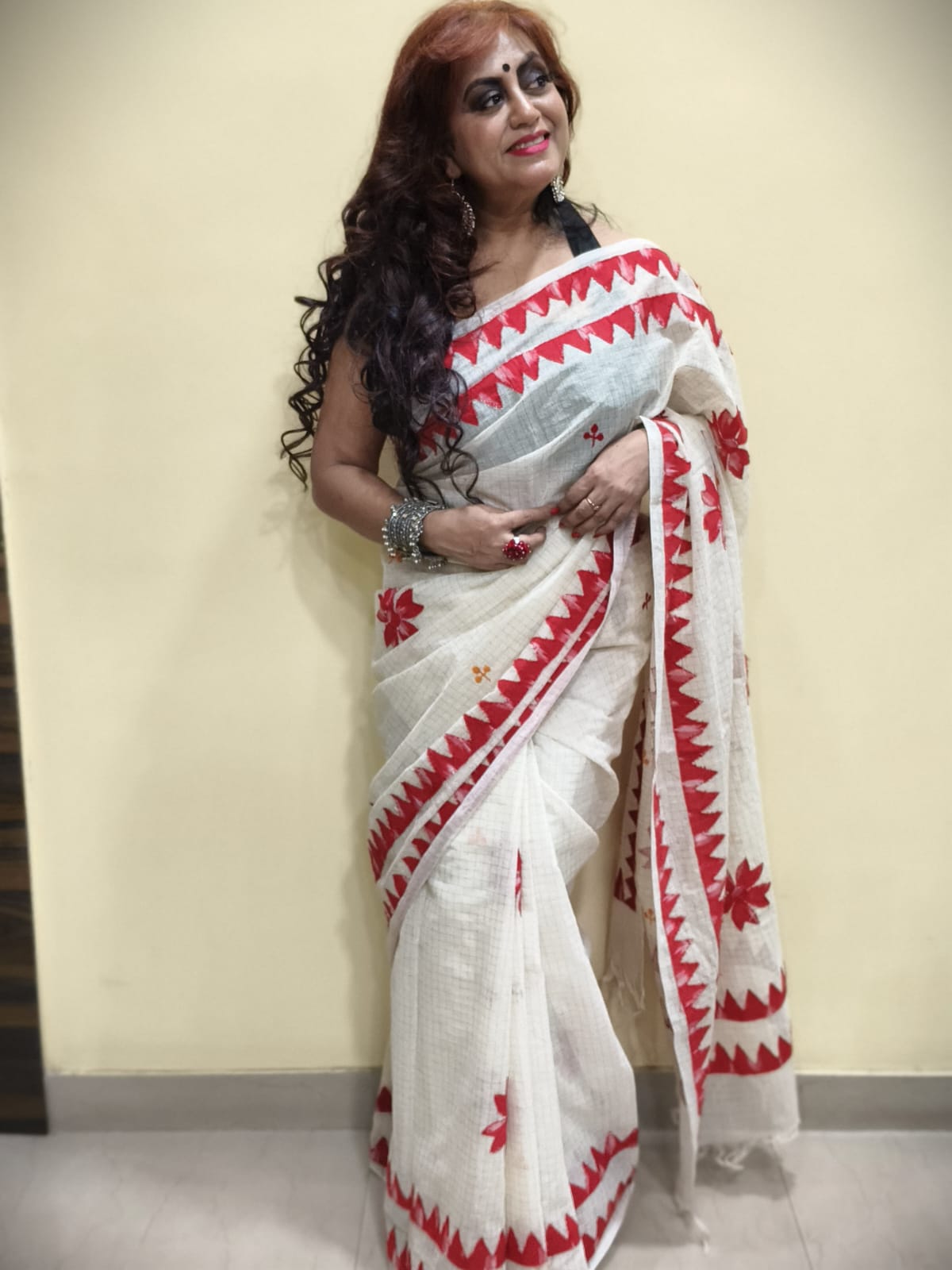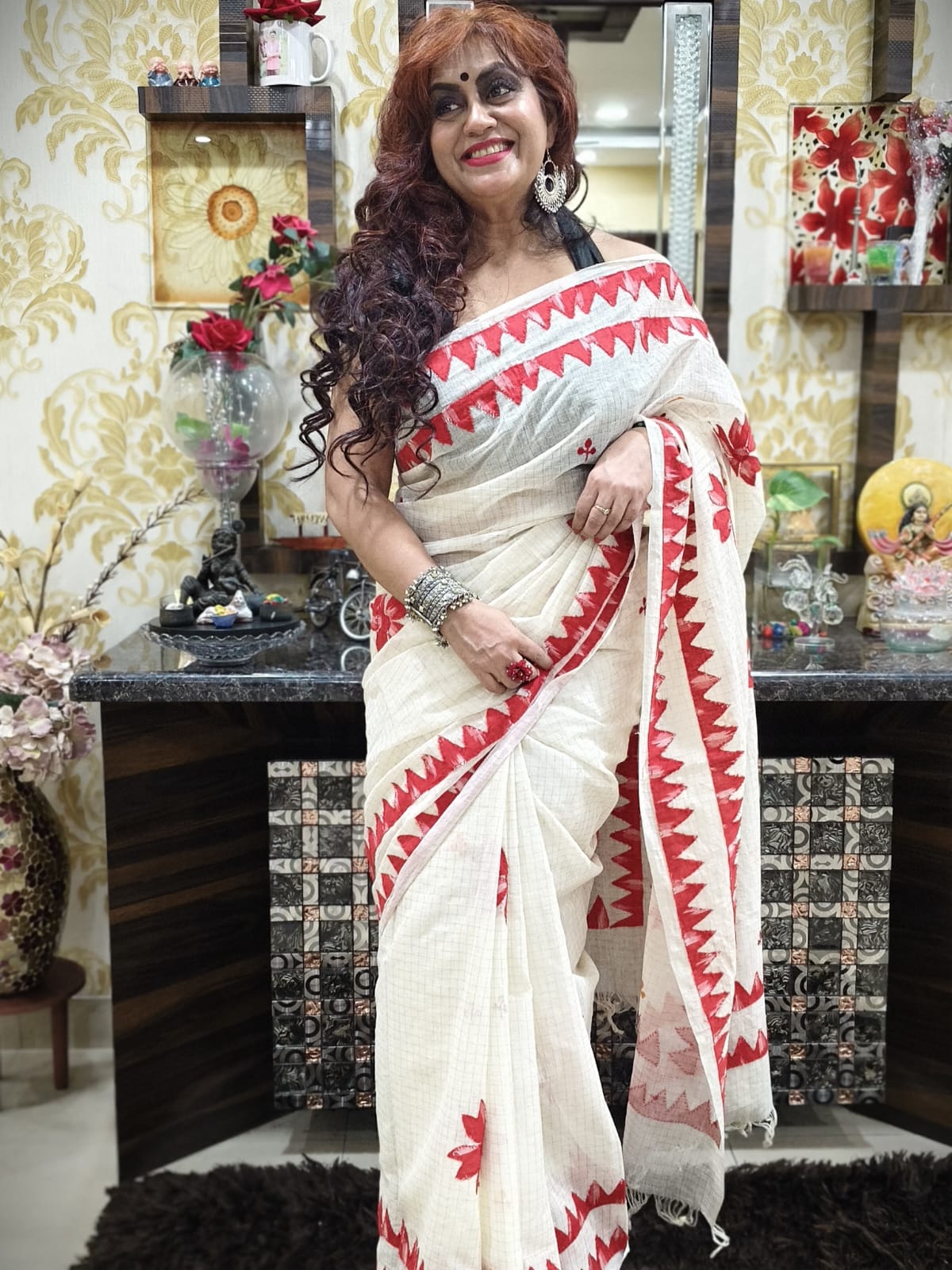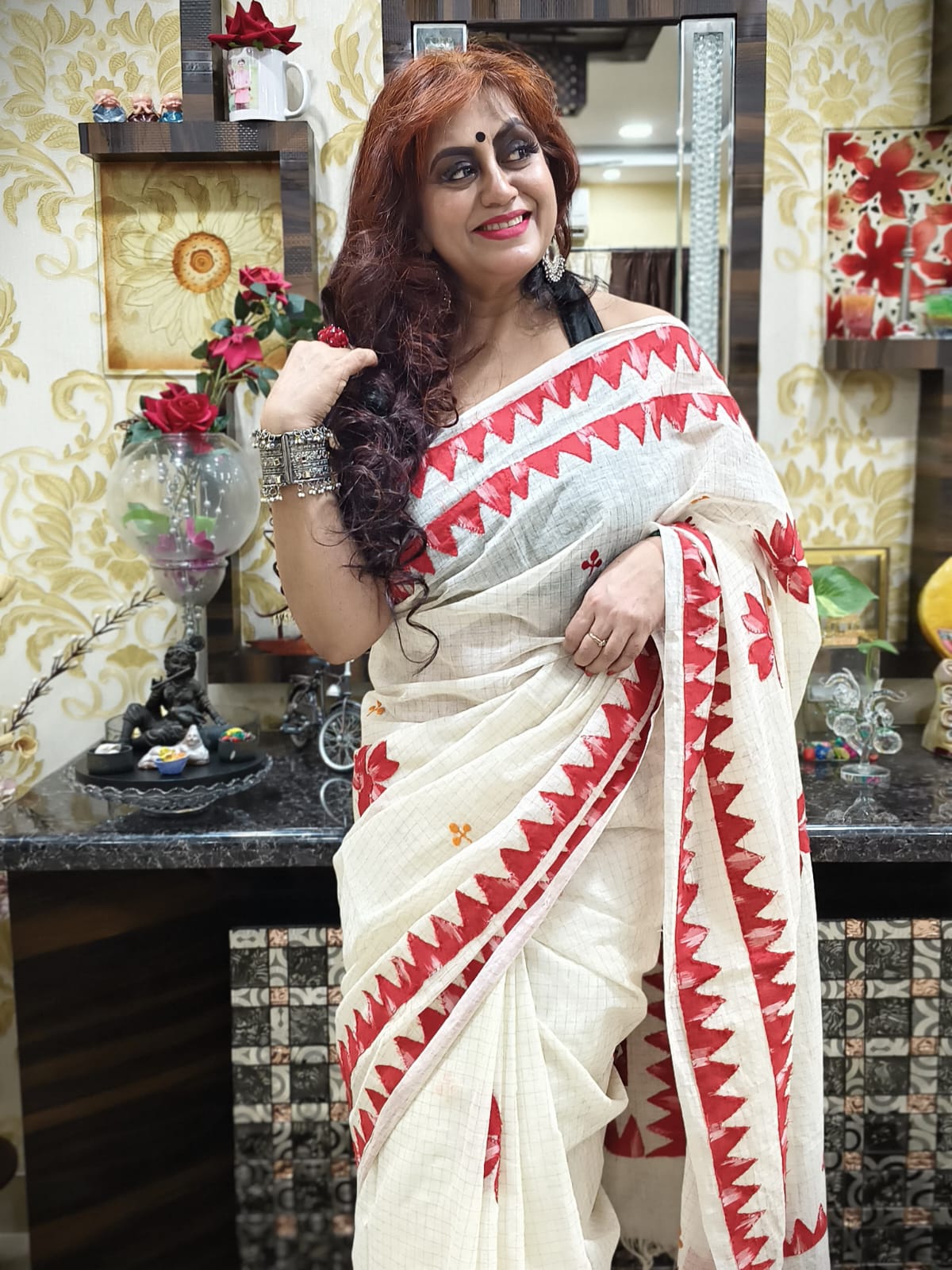 Discover the timeless charm of our hand-embroidered saree with Applique work on the border-both the sides, Palloo,  spread across whole body of the Saree, a boutique designer sarees  on premium cotton handloom  fabric. These sarees are lightweight, soft to the touch, and exceptionally comfortable, making them perfect for all-day wear. Featuring exclusive, trendy designs and vibrant, colorfast hues, each piece is a unique expression of elegance and artistry. Ideal for both formal and informal occasions, they also make a thoughtful and stylish gift option. Embrace tradition with a modern twist through these beautifully handcrafted sarees.