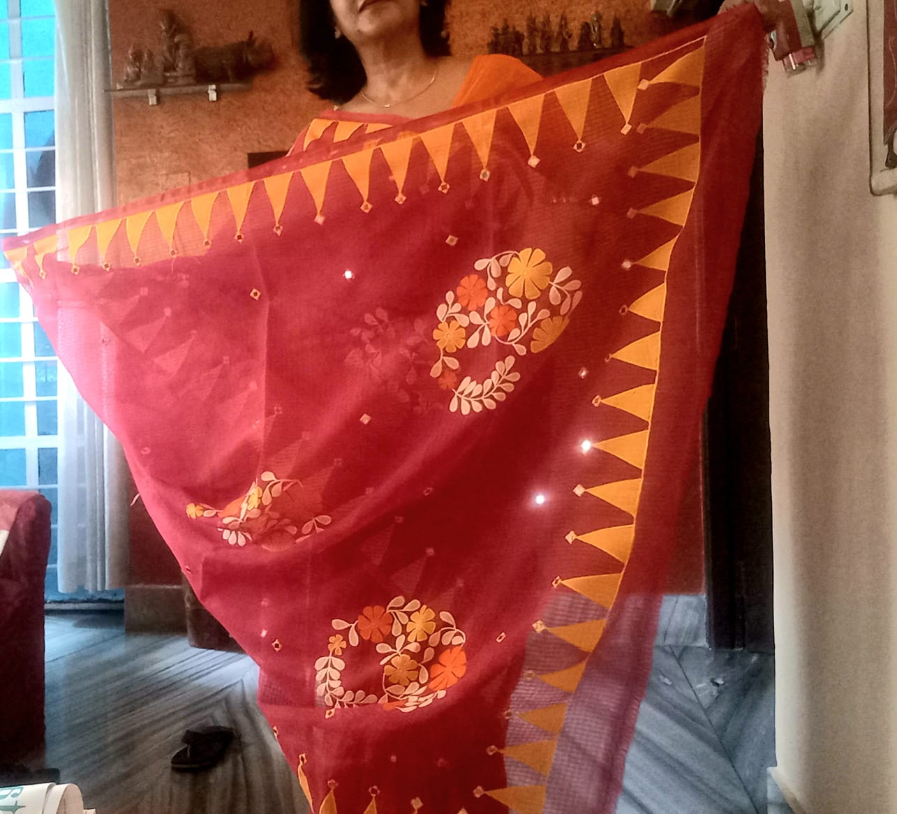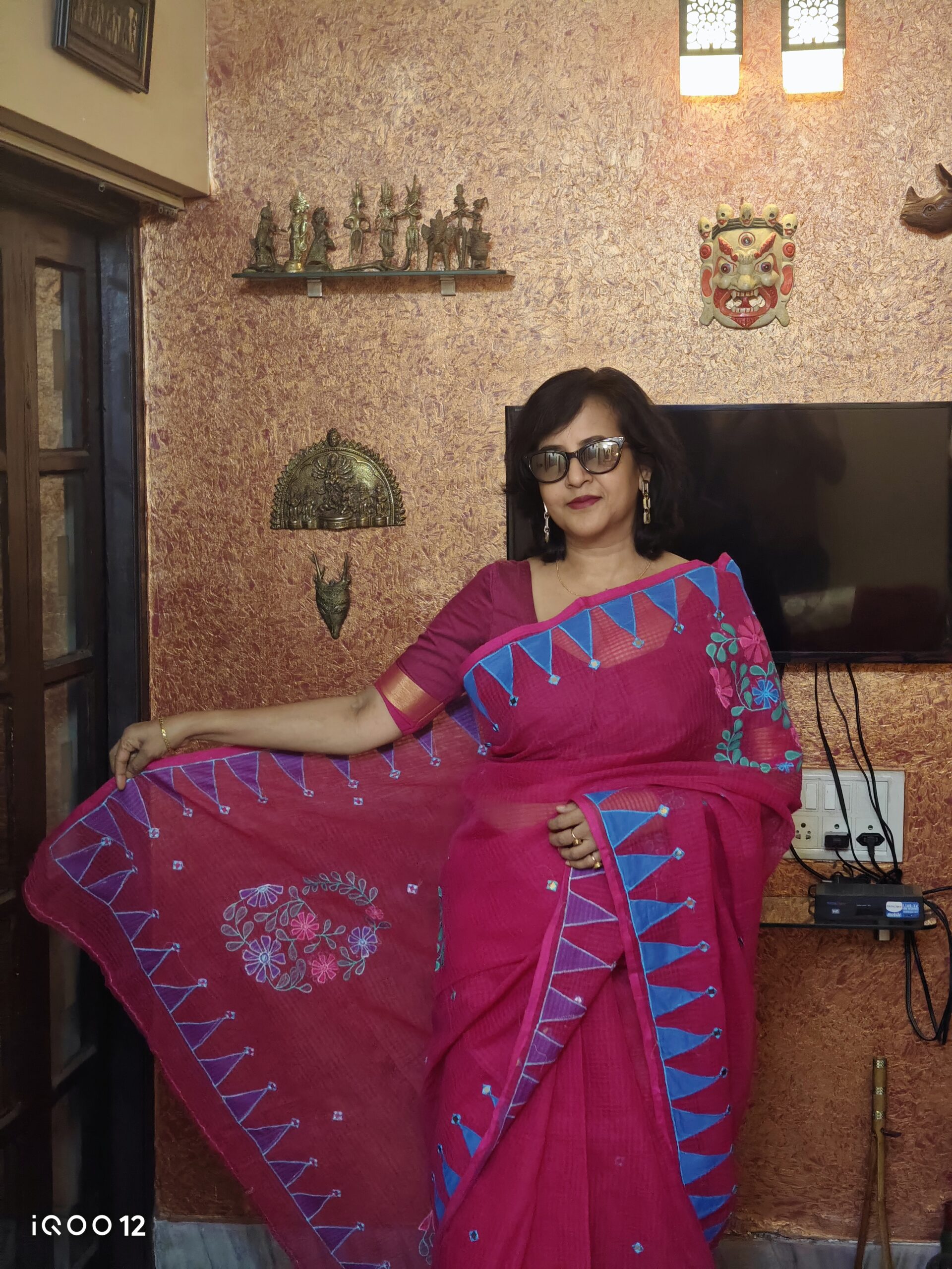 Discover the timeless charm of our hand-embroidered applique work boutique designer sarees, with sequin work crafted on premium cotton handloom fabric. These sarees are lightweight, soft to the touch, and exceptionally comfortable, making them perfect for all-day wear. Featuring exclusive, trendy designs and vibrant, colorfast hues, each piece is a unique expression of elegance and artistry. Ideal for both formal and informal occasions, they also make a thoughtful and stylish gift option. Embrace tradition with a modern twist through these beautifully handcrafted sarees.
