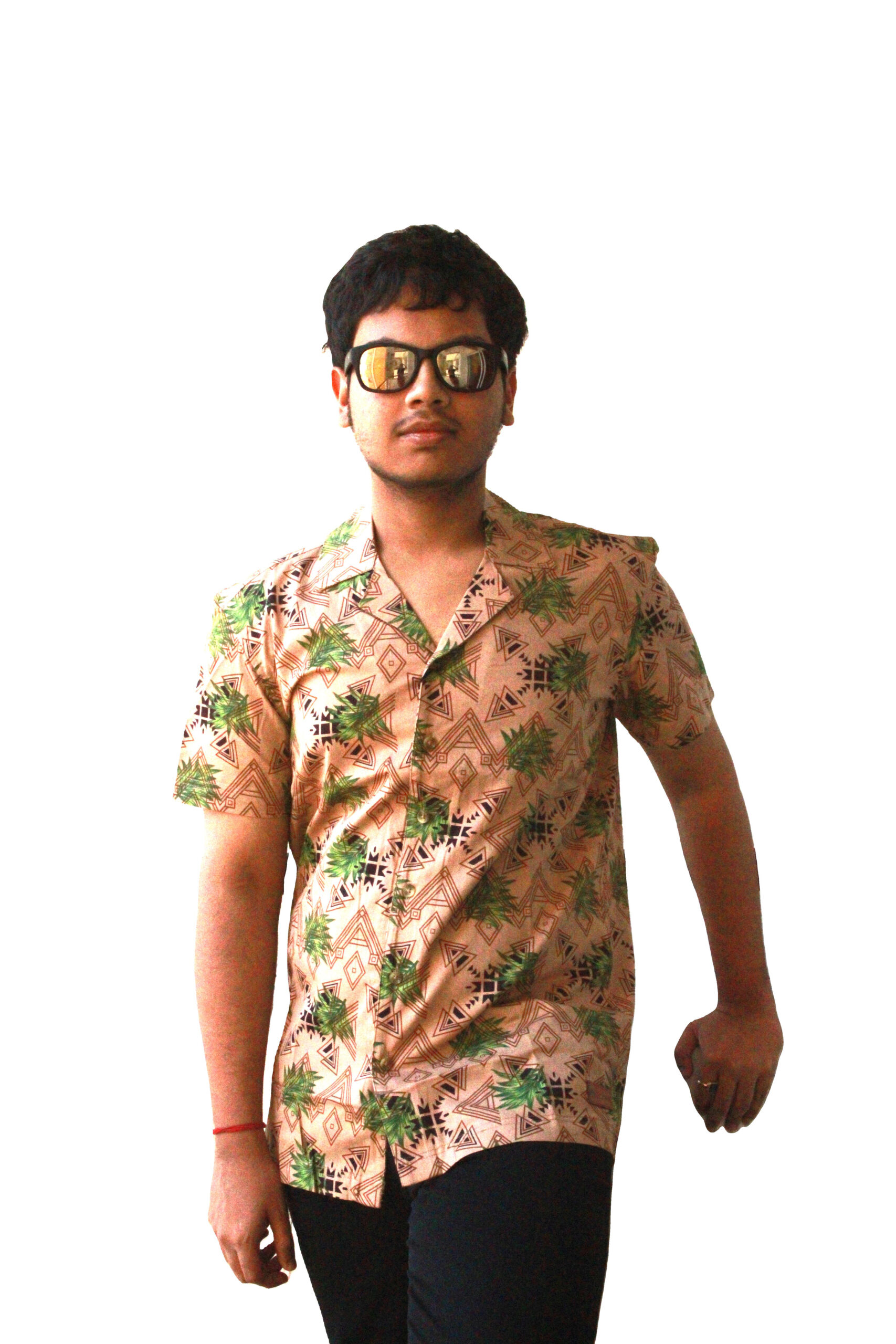 A classic half sleeve shirt styled with flower print program cotton fabric, crafted with soft stretchable light weight fabric, a modern stylish look finished with matching button provided with extra button. Invest in comfort and style that never goes out of fashion.